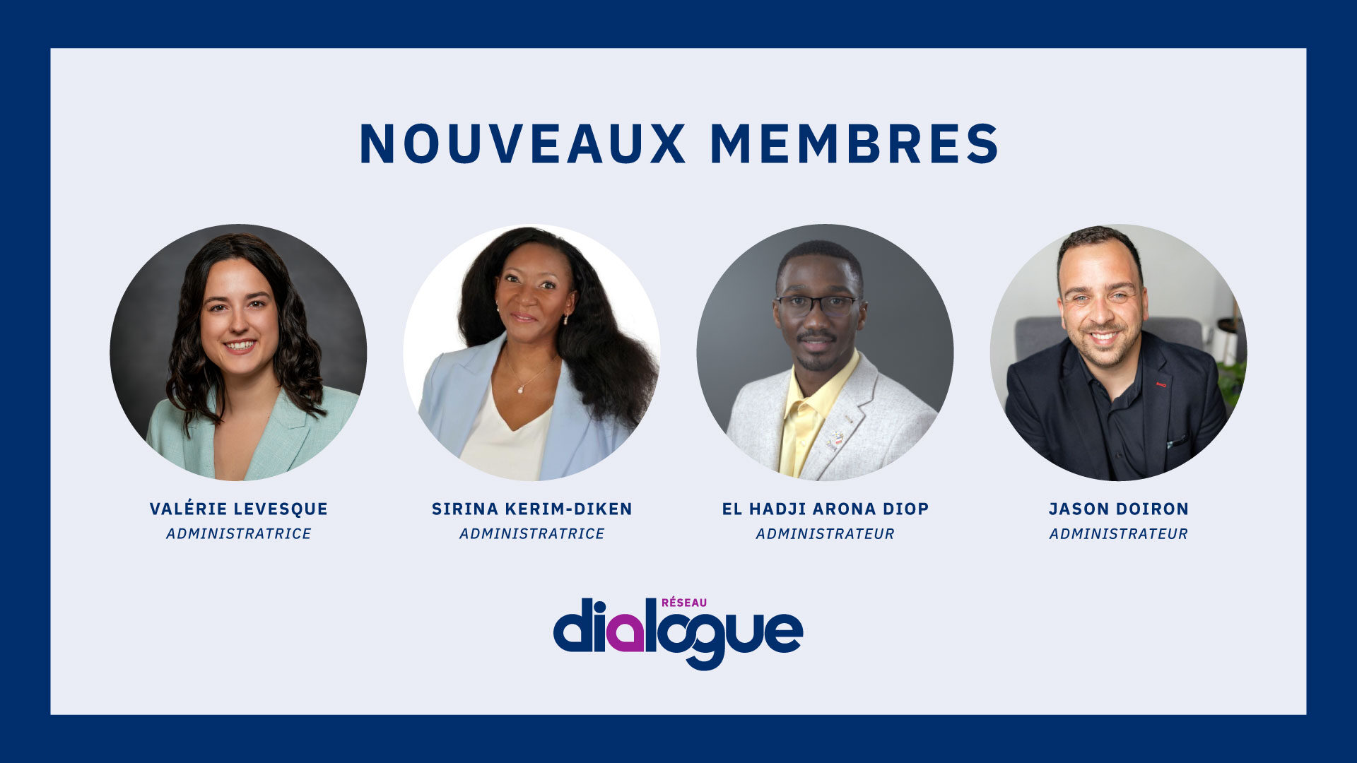 Le Réseau dialogue accueille quatre nouveaux membres du conseil d’administration, soit :