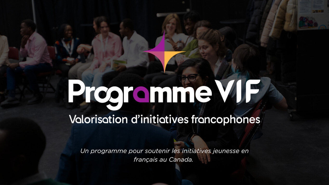 Le Programme de valorisation d’initiatives francophones (VIF), soutenu par le Plan d’action pour les langues officielles 2023-2028 du gouvernement du Canada par l’entremise de Patrimoine canadien, vise à offrir aux jeunes âgé·e·s de 14 à 30 ans des occasions uniques pour se rassembler, échanger, s’encourager et s’engager en français.